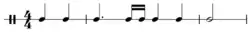 In the ballroom the gavotte was often paired with a preceding triple-time minuet: both dances are stately, and the gavotte's lifted step contrasted with the shuffling minuet step. It had a steady rhythm, not broken up into faster notes.[1]