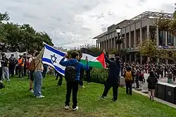 By December 5, more than 1 million Americans had participated in protest over the conflict, across over 2,600 events: 442 in support of Israel, and 2,100 in support of Palestine.[7][5] An escalation of pro-Palestinian protests on university campuses began on April 17, 2024, and continued into 2025.