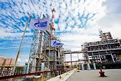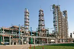 Gazprom Neftekhim Salavat (Russian: Газпром нéфтéхим Салават, IPA: [ɡɐsˈprom nʲɪftʲˈexim salavˈɑt]) is a Russian petrochemicals company headquartered in the city of Salavat in Bashkortostan. The company specializes in the processing of hydrocarbons into approximately 150 different petrochemicals, fertilizers and petroleum products, such as gasoline and fuel oil. As of 2024, the company controls three main plants in the city of Salavat, making it the largest petrochemical production complex in Russia. This includes an oil refinery and two additional plants that produce monomers and gas-based chemicals. In recent years, the complex has received criticism for its environmental record from Rosprirodnadzor,[2][3][4] and also for its safety record.[5] Until February 2011, the company was known as Salavatnefteorgsintez (Russian: Салаватнефтеоргсинтез, lit. 'Salvat Oil Organic Synthesis').[6]