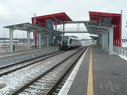 Gdańsk Rębiechowo railway station is a railway station in the city of Gdańsk, in the Pomeranian Voivodeship, Poland. The station opened on 1 September 2015 and is located on the Gdańsk Wrzeszcz–Gdańsk Osowa railway and Gdańsk Rębiechowo–Rębiechowo railway. The train services are operated by SKM Tricity as part of the Pomorska Kolej Metropolitalna (PKM).