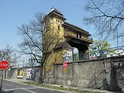 In the early twentieth century (circa 1913) on the railway embankment a control room Gantry was built, the only one of its kind in northern Poland. Architects incorporated into it in the eclectic style of the district. In May 2015, in the face of intention to demolish this unique object by PKP (in all of Poland there are only five such signal boxes, all others are located in the Upper Silesia), it was added to the register of monuments.[2]