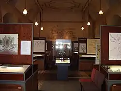 The Geiseltal Museum was opened in 1934, just nine years after the start of the excavations, due to the immense amount of finds in the Neue Residenz, which was commissioned by Cardinal Albrecht II and built between 1531 and 1537 near the Halle Cathedral in the city of Halle. The museum simultaneously served as a collection depot and exhibition, with the latter being set up in the All Saints' Chapel on an area of 267 m². The other rooms of the New Residence were used by the Geological-Palaeontological Institute of the Martin Luther University Halle-Wittenberg. The museum's heraldic animal was the Propalaeotherium prehistoric horse skeleton from 1933. The exhibition was interrupted shortly before the end of World War II in 1945, when the finds had to be removed for security reasons.[152][3]