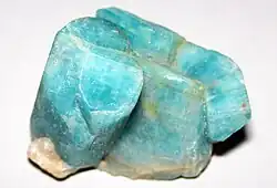 The Hebrew word lešem is borrowed from the Ancient Egyptian word nšmt, referring to amazonite, a blue-green form of microcline feldspar. The Greek and Latin translations here (Septuagint's λιγύριον ligurion ‘amber’ and Vulgate's ligurius) are probably swapped with another stone or corrupt.[5]