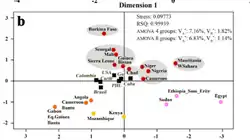 - ^ a b Stefflova, Klara; et al. (January 6, 2011). "Dissecting the Within-Africa Ancestry of Populations of African Descent in the Americas". PLOS ONE. 6 (1): e14495. Bibcode:2011PLoSO...614495S. doi:10.1371/journal.pone.0014495. ISSN 1932-6203. OCLC 8091520981. PMC 3017210. PMID 21253579. S2CID 9792013.