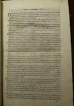 - ^ Michele Castelli was born on about 1600 not in Genoa. He is known as editor of the Genova from 1639 to 1646, when he left Genoa to go possibly to Lucca. The last information about him is dated 1647 when the Senate of Genoa decided to investigate a writing of him considered defamatory for the Republic.[2]