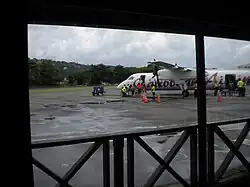 The airport previously had scheduled passenger jet service flown by Caribair which in 1968 was operating McDonnell Douglas DC-9-30 jetliners on a daily basis with nonstop flights to Antigua and Barbados with direct jet service to Port of Spain, Trinidad, St. Maarten, San Juan, Puerto Rico, St. Croix and St. Thomas.[8] In 1973, Leeward Islands Air Transport (LIAT) was operating stretched British Aircraft Corporation BAC One-Eleven series 500 twin jets on nonstop flights to Antigua, Barbados and Fort-de-France, Martinique as well as direct, no change of plane jet service with the BAC One-Eleven to Port of Spain, Trinidad, St. Maarten and San Juan, Puerto Rico.[9] In 1995, Carib Express was operating British Aerospace BAe 146-100 jet flights into the airport nonstop from Barbados, Dominica and St. Vincent as well as one stop BAe 146 service from Port of Spain and St. Kitts.[10] Another previous jet operator was BWIA West Indies Airways (operating as BWIA International at the time) which in 1996 was operating McDonnell Douglas MD-80 jetliners between the airport and Miami twice a week and also twice a week between the airport and New York JFK Airport with both of these direct, no change of plane flights making an intermediate stop in Antigua as well as flying MD-80 service several days a week nonstop to Barbados with these flights then continuing on to Port of Spain.[11]