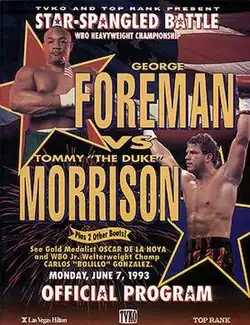 George Foreman vs. Tommy Morrison, billed as the Star-Spangled Battle, was a professional boxing match contested between George Foreman and Tommy Morrison on June 7, 1993, for the vacant World Boxing Organization Heavyweight Championship.[1]