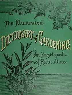 He contributed to the Journal of Botany of 1875 with an article titled “The wild flora of Kew Gardens and Pleasure grounds”. Earlier volumes of The Garden contain many of his articles on cultivated trees and shrubs. His most important work, though, was the “Illustrated Dictionary“, which soon was regarded as the standard reference work, a French edition also being published at the time. The Royal Horticultural Society's present Dictionary of Gardening published by Oxford, has Nicholson's Illustrated Dictionary as its basis, and has retained its predecessor's layout.[2]