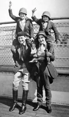 In 1931, George, Blanche and daughters Kathryn and Janet Hutchinson (1925[5] - ) became nationwide celebrities as the Flying Hutchinsons, when they visited the capitals of all 48 United States by air.[6] Further fame came when 'the Flying Family' attempted an around-the-world flight the next year; their Sikorsky S-38 aircraft crash-landed off Greenland, and the family were stranded for several days before being picked up by a fishing trawler and transported to the United Kingdom.[2] George and Blanche wrote two books about their adventures - The Flying Family in Greenland (1935) and Flying the States (1937) - and the family were pictured on cereal boxes and made appearances on stage and radio.[2]
