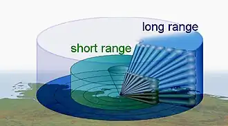 The three faces dedicated to the X-band radar handle low-altitude tracking and radar illumination, while the three S-band faces handle target search and tracking regardless of weather. "Operating simultaneously over two electromagnetic frequency ranges, the DBR marks the first time this functionality has been achieved using two frequencies coordinated by a single resource manager."[34]