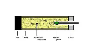 A gerb is a type of firework which produces a jet of sparks, usually lasting between 15 and 60 seconds. It is a thick-walled tube filled with pyrotechnic composition and possessing a choke, which is a narrowing in the tube. Gerbs are often referred to as 'fountains'.