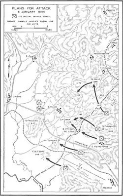 When the 5th Mountain division became available, the 10th Army replaced the 44th Division in the mountains and shifted it south to cover the more likely approach to the Liri valley, at the M gap. It would cover a wide sector with its units interspersed with those of the 29th Panzer Grenadier division. The defence was based on a series of low hills on either side of Highway 6, with the landscape rising dramatically on its left flank to the 1270 m high mount Majo. The US Fifth Army had used the short lull in operations since mid-December to freshen its forces, and plan for the renewed attack. The attack would use a task force from 1st Armoured Division, plus some British support on the left, two regiments of the 34th US Infantry Division, the 168th and the 135th, on the right and some special service troops on the high peaks of Mount Majo. The 1st Special Service Regiment had a battalion of specifically trained mountain troops, and these were used to cross the difficult terrain and seize the summit of Mt Majo on 4 January. The summit was in the sector of the 44th's 132 Infantry Regiment, who mounted repeated counterattacks but failed to regain the lost ground and suffered badly at the hands of American artillery of the US 93rd Armoured Field Artillery Battalion fired in support of the special service troops. The Special Service troops went on to secure the neighbouring peaks. With the high peaks secured the US forces launched their drive along highway 6. The attack started well when forces from 168th lead battalion were ambushed by elements of III/132 under Lt Prandl who captured 2 officers and 68 men. The Americans, however, went on into the village of Venafro with the 135th US Regiment, and after two days of difficult fighting, captured it, taking 170 prisoners from the 44th Division.