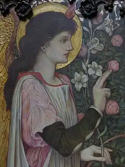 Spencer-Stanhope is also thought to have been the artist who painted the panels for the pulpit in Christ Church, Isle of Dogs. The work shows the influence of her uncle's pulpit panels in St. James the Great Church, Flockton, Wakefield; two panels appear to be imitations, with the third taking a more definably original approach. (The painted mural over the chancel arch is tentatively credited to John Roddam.) Gertrude had given the pulpit, installed in 1907,[7] in memory of her brother Edward, but the particular connection of the Spencer-Stanhope family to Christ Church is unknown.[8]