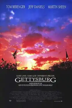 Gettysburg is a 1993 American epic war film about the Battle of Gettysburg in the American Civil War. Written and directed by Ronald F. Maxwell,[3] the film was adapted from the 1974 historical novel The Killer Angels by Michael Shaara.[4] It features an ensemble cast, including Tom Berenger as James Longstreet, Jeff Daniels as Joshua Chamberlain, Martin Sheen as Robert E. Lee, Stephen Lang as George Pickett, and Sam Elliott as John Buford.[3]