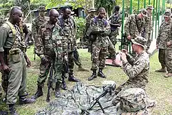 In 1961, Ghana was the first country in which the United States deployed Peace Corps personnel, after President John F. Kennedy issued an executive order to establish an agency within the Department of State.[2] Since then, the two countries have engaged in joint military cooperation and exchange programs. A recent example of this occurred when Ghanaian military forces, which had trained in jungle warfare for the past four decades, aided the regionally aligned forces of United States Army Africa in a jungle warfare training exercise in the Achiase Military Base in Ghana.[3]