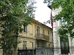 Țițeica married Florence Thierin (1882–1965) and the couple had three children — Radu (1905–1987), Gabriela (1907–1987), and Șerban (1908–1985) — all of whom pursued careers in academia;[10][11] the youngest one became a renowned quantum physicist. The family lived in a 19th-century house on Dionisie Lupu Street, close to Lahovari Plaza, in Sector 1 of Bucharest; Țițeica moved there around 1913, when he was elected to the academy.[11] A commemorative plaque was affixed to the house by the city administration in 1998. He died in 1939 in Bucharest[2] and was buried in the city's Bellu Cemetery.[12]