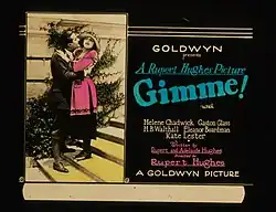 Gimme is a 1923 American comedy silent black and white film directed by Rupert Hughes and starring Helene Chadwick and May Wallace.[1][2] This film along with Charge It (1921) and Ladies Must Dress (1927) encouraged women to be flappers and to increase their consumerism.[3]