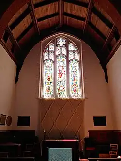 In the original statement of aims and scope for the "Proposed College for Women" in 1867, it was announced that religious services and instruction would be in accordance with the principles of the Church of England, but where conscientious objections were entertained, attendance would not be necessary. A modified version of this statement appears in the modern college statutes, where it reads that "services in the Chapel shall normally be held in accordance with the practice of the Church of England, but other religious services may also be held there."[66] At the outset, Chapel was used for morning prayers, usually said by the Mistress, and for Sunday services, taken by clergy of various denominations.[67] Today, at least two services are held on a weekly basis: Evensong on Sunday at 5:30pm, and Compline on Tuesday at 9:10pm. They are organised by the college's part-time chaplain, who is assisted by student chapel wardens.[68] The Mistress holds general responsibility in regard to services in the chapel, which she partly delegates to the Chapel Committee.[66] The current Chaplain is the Rev. Dr Tim Boniface, who is also a bye-fellow at Girton, and a jazz musician.[69]