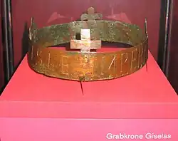 Gisela was known for "her most becoming appearance".[19][20] Gisela's tomb in Speyer was opened in 1900 and her mummified body was found to be 172 cm (5 ft 8 in) tall, with long blond hair.[21]