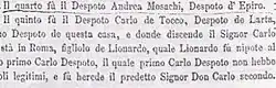 6. ^ Elsie, Robert (2003). Early Albania A Reader of Historical Texts, 11th-17th Centuries. Harrassowitz. p. 34. ISBN 978-3-4470-4783-8. ...Appendixed to the chronicle, though not included here, is a text by John's son, Constantine Musachi, dated 1535, in which the latter states that his father "was buried in the large church of Francavilla in the country of Otranto in a marble grave where mass is conducted three times a week. On it is an inscription reading: Almighty Jesus, this is the grave of John Musachi, the son of Gjin the Despot, Lord of Epirus and of Myzeqe, who stemmed from the city of Byzantium and bore the double headed eagle as his emblem. To him was dedicated this wreath in the year of our lord 1510." For this reason, the following chronicle is traditionally dated 1510. A reference in the text to the Battle of Chaldiran in 1514 proves, however, that John Musachi cannot have died before 1515...