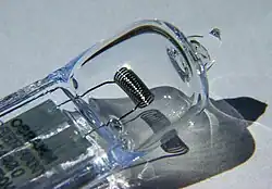 The next step was to use thin platinum wire. Platinum is easily wetted by glass and has a similar coefficient of thermal expansion as typical soda-lime and lead glass. It is also easy to work with because of its non-oxidibility and high melting point. This type of seal was used in scientific equipment throughout the 19th century and also in the early incandescent lamps and radio tubes.