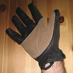 Gloves that are worn by the belayer to protect their skin in the event of sudden rope movement and to aid grip.[14]