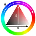 - HSV color space. The HSV (Hue, Saturation, Value) model, also called HSB (Hue, Saturation, Brightness), defines a color space in terms of three constituent components: