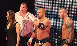 Stables can vary in size, from three-man units like The Shield (pictured) who feature similar outfits, to large groups with varying membership such as The Heenan Family. Dean Ambrose (right) played the de facto leader and mouthpiece of the group,[47][48] while Bobby Heenan was the spokesperson of The Heenan Family.