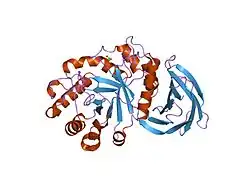 2. ^ Henrissat B, Callebaut I, Fabrega S, Lehn P, Mornon JP, Davies G (July 1995). "Conserved catalytic machinery and the prediction of a common fold for several families of glycosyl hydrolases". Proceedings of the National Academy of Sciences of the United States of America. 92 (15): 7090–4. Bibcode:1995PNAS...92.7090H. doi:10.1073/pnas.92.15.7090. PMC 41477. PMID 7624375.