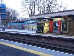 Godalming railway station is a stop on the Portsmouth Direct Line, 34 miles 37 chains (55.5 km) down the line from London Waterloo. The station, opened in 1859 to replace one on a different site, is situated at the edge of the town of Godalming, Surrey. The main station building is a Grade II listed building.[1]