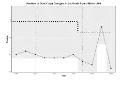 Chart of yearly table positions for Gold Coast Chargers in First Grade Rugby League