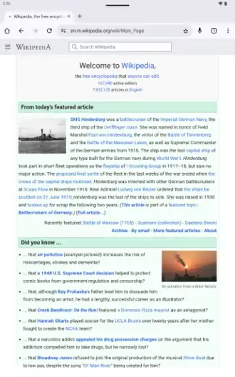 ![]() Screenshot of Google Chrome, showing the Main Page of the English Wikipedia | |||||||||||
