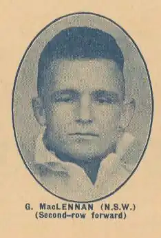 Gordon Douglas McLennan (1914–1966) was an Australian professional rugby league footballer who played in the 1930s and 1940s. An Australia national and New South Wales state representative forward, he played his club football in Sydney for Newtown (with whom he won the 1943 NSWRFL Premiership), as well as in country New South Wales.