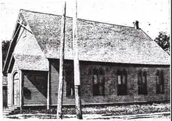 In 1885, the church congregation began meeting in a tent, provided by Rev. W. A. Wiseman, located on a vacant lot at the intersection of 19th and Crocker streets. The tent was replaced by a small (40 by 60 foot) frame church building later that year.[2][4][7] A second, larger church building which could seat up to 1,400 people, was erected at the same location in 1902.[3][8] This building was badly damaged by a fire in 1917, and the congregation continued to meet at Drake University and the First Christian Church, until repairs could be made.[9]
