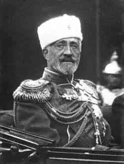 Grand Duke Nicholas Nikolaevich of Russia (Russian: Николай Николаевич Романов (младший – the younger); 18 November 1856 – 5 January 1929) was a Russian general in World War I (1914–1918). The son of Grand Duke Nicholas Nikolaevich of Russia (1831–1891), and a grandson of Emperor Nicholas I of Russia, he was commander in chief of the Imperial Russian Army units on the main front in the first year of the war, during the reign of his first cousin once removed, Nicholas II. Although held in high regard by Paul von Hindenburg, he struggled with the colossal task of leading Russia's war effort against Germany, including strategy, tactics, logistics and coordination with the government.[4] After the Gorlice–Tarnów offensive in 1915, Tsar Nicholas replaced the Grand Duke as commander-in-chief of the army. He later was a successful commander-in-chief in the Caucasus region. He was briefly recognized as emperor in 1922 in areas controlled by the White movement in the Russian Far East.