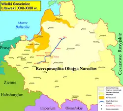The Great Lithuanian Route (Lithuanian: Didysis Lietuvos kelias, Polish: Wielki Gościniec Litewski) was one of the most important roads of the Polish–Lithuanian Commonwealth. It connected the capital of the Kingdom of Poland, Warsaw, with the capital of the Grand Duchy of Lithuania, Vilnius.