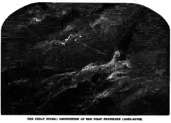 Destruction of the first Eddystone lighthouse in great storm 1703