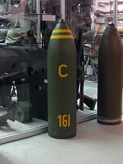 Green Cross is also a generic World War I German marking for artillery shells with pulmonary agents (chemical payload affecting the lungs).[1] The tip of the projectile with the fuse end painted green and a green cross at the bottom of the cartridge.