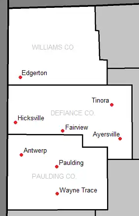 The conference stayed intact until 1972, when district consolidations in Paulding County caused some changes in the make-up of some member schools. Blue Creek became a part of the new Wayne Trace School District, along with Grover Hill and Payne. Oakwood became a part of the Paulding Exempted School System. Antwerp and Holgate also joined the league making the number of members eight: Antwerp, Ayersville, Hicksville, Holgate, Fairview, Paulding, Tinora, and Wayne Trace.