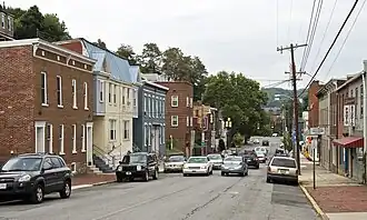 The Greene Street Historic District is a national historic district in Cumberland, Allegany County, Maryland. It is a 7-acre (28,000 m2) linear historic district along both sides of Greene Street on the west side of Cumberland. It contains 45 buildings (44 are brick), 37 of which are residential and 8 of which exhibit commercial design characteristics. The earliest buildings in the district are built in the Federal style, followed by buildings erected in the Greek Revival, Italianate, Queen Anne, and Colonial Revival styles. The earliest of the district's resources was constructed about 1820, with the most recent built about 1930.[2]
