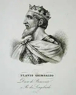 Grimoald or Grimwald (†671) was a 7th-century King of Italy, ruling as Duke of Benevento from 647 to 662, and then as King of the Lombards from 662 until his death in 671.[1]