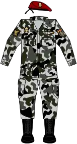 The uniform of the GEO includes: anorak, jacket, sweater, t-shirt, pants, boots and beret. Overalls are used as a complementary clothing piece. During summer, GEO members use a short-sleeved shirt instead of the sweater and the jacket.[15]