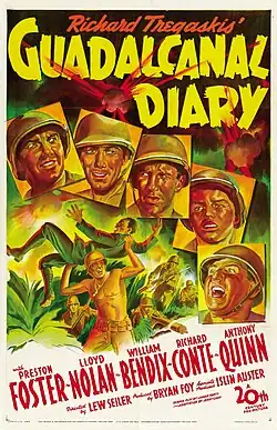 Guadalcanal Diary is a 1943 World War II war film directed by Lewis Seiler, featuring Preston Foster, Lloyd Nolan, William Bendix, Richard Conte, Anthony Quinn and the film debut of Richard Jaeckel. It is based on the book of the same name by Richard Tregaskis.