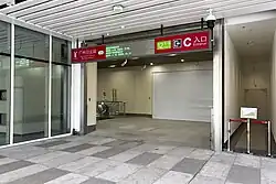 The station has 9 entrances/exits. Among them, Exits F, G and H, located in the arrival concourse on the first underground floor of the national railway station is entry only (into the metro station), and one-way security check measures are implemented so that passengers can take the metro without having to go through security again after exiting the national railway station.[7][8]