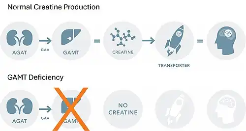 - ^ "Guanidinoacetate Methyltransferase (GAMT) Deficiency". Newborn Screening Ontario. Retrieved 2024-10-15.