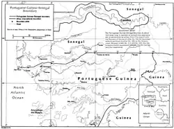 Senegal gained independence from France in 1960, followed by Portuguese Guinea (as Guinea-Bissau) in 1974 after a prolonged war against Portuguese forces; the border became an international one between two sovereign states.[4] The border region has been used by various armed groups involved in the Casamance conflict and the Guinea-Bissau Civil War in the late 1990s.[6][7][8]