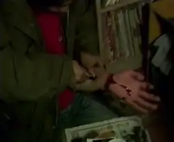 In 1991, American actor Charlie Sheen is said to have obtained a copy of the film from film writer and critic Chris Gore.[10] Upon watching and becoming convinced that what was on screen was a genuine snuff film that depicted the dismemberment and killing of a woman,[1][5][11] Charlie Sheen quickly reported it to authorities in which the Federal Bureau of Investigation purportedly opened an inquiry into those involved in the film's production and distribution. Any official investigations were dropped after it was demonstrated that special effects were used to simulate the violence in the film.[12][13] This incident, and the frequency with which it has been recounted by "hard core" fans of horror films, has been compared to an urban legend.[1][14]