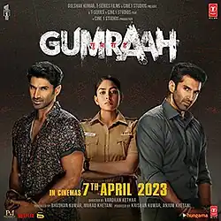 Gumraah (transl. Astray) is a 2023 Indian Hindi-language action thriller film[4][5][6] directed by Vardhan Ketkar and produced by T-Series Films. The film stars Aditya Roy Kapur in a dual role along with Mrunal Thakur and Ronit Roy. It is a remake of the 2019 Tamil film Thadam.[7] It revolves around a murder investigation which becomes complicated after the police discover two lookalike suspects.