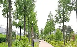 Dorimcheon, on the other hand, has been extensively redeveloped and built over. For most of its course with Seoul and in Guro District in particular it runs through artificially created channels beneath or alongside Seoul Metro Line 2. Towards Sindorim station the stream reverts to a natural state and the surrounding area has been restored to provide habitats for wildlife and recreational facilities for the public.