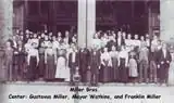 They opened their first store at 510 Market Street, where they prospered in the retail business, first in distressed merchandise, eventually moving up to a full-featured department store: the Miller Brothers' Company department store, founded 1889, adding a wholesale department in 1895. They conducted business under the name of Miller Brothers Company, jobbers, brokers and mill agents. [2][3][6][17]